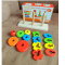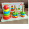 عبارة عن قاعدة خشبيه بها3 اعمدة منهم عمودين بهم نتؤات والاخير عمود حلقات لترتيب الحلقات حسب الاكبر والاصغر مقسمه لاشكال هندسيه مختلفه تطلب من الطفل أدخال الأشكال الهندسية ووضع الشكل الصحيح فى مكانه وحل المشكلات لتعليم دخول وخروج الشكل من النتؤات في العمود الخشبي